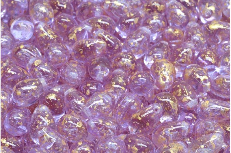 ドロップビーズ、透明ライトアメジストゴールドスプラッシュ(20310-94401)、ガラス、チェコ共和国