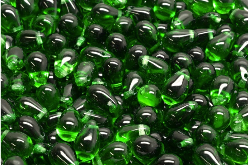 ドロップビーズ、透明グリーン、透明グリーンエメラルド(50100-50150)、ガラス、チェコ共和国