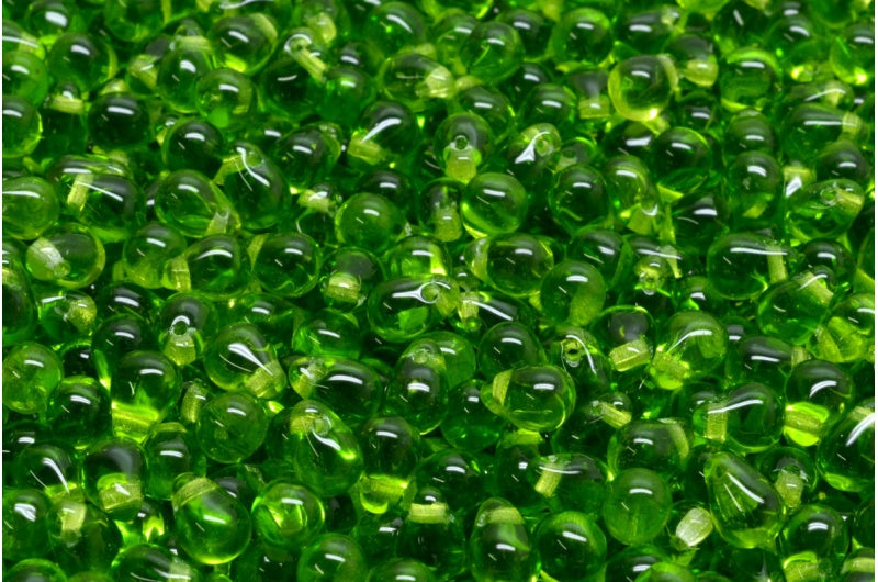 ドロップビーズ、透明グリーン(50220)、ガラス、チェコ共和国