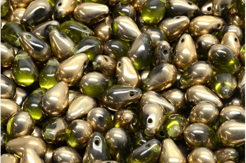ドロップビーズ、透明グリーンゴールド(50220-26441)、ガラス、チェコ共和国