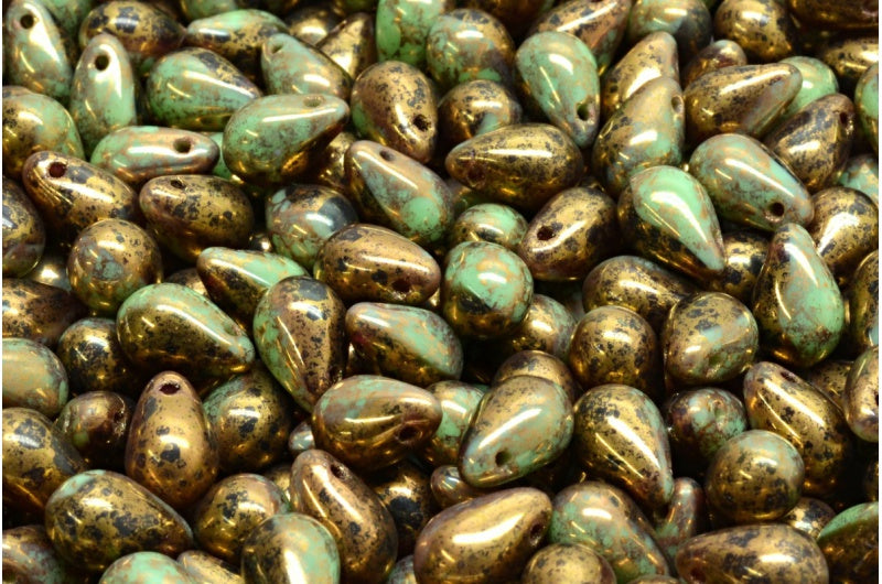 ドロップビーズ、不透明グリーン 20100 テラコッタバイオレット (53200-20100-15496)、ガラス、チェコ共和国