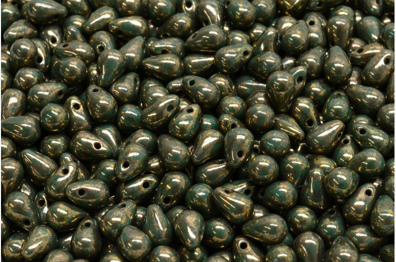 ドロップビーズ、不透明グリーンテラコッタバイオレット(53240-15496)、ガラス、チェコ共和国