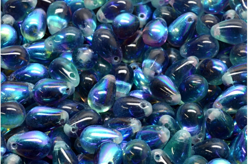 ドロップビーズ、透明アクア透明ライトアメジストAb(60200-20500-28701)、ガラス、チェコ共和国