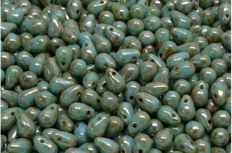 ドロップビーズ、ブルーピカソ(63020-43400)、ガラス、チェコ共和国