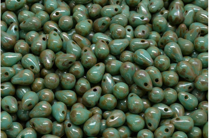 ドロップビーズ、ターコイズピカソ(63130-43400)、ガラス、チェコ共和国