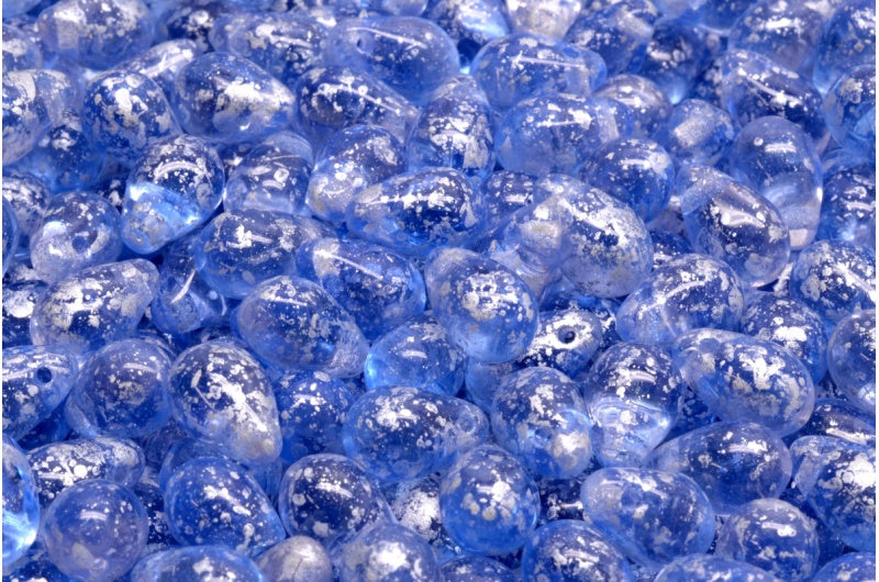 ドロップビーズ、透明ピンク透明ブルーシルバースプラッシュ(70100-30040-94400)、ガラス、チェコ共和国