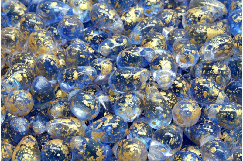 ドロップビーズ、透明ピンク透明ブルーゴールドスプラッシュ(70100-30040-94401)、ガラス、チェコ共和国