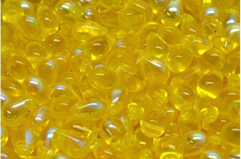 ドロップビーズ、透明イエローAb(80020-28701)、ガラス、チェコ共和国
