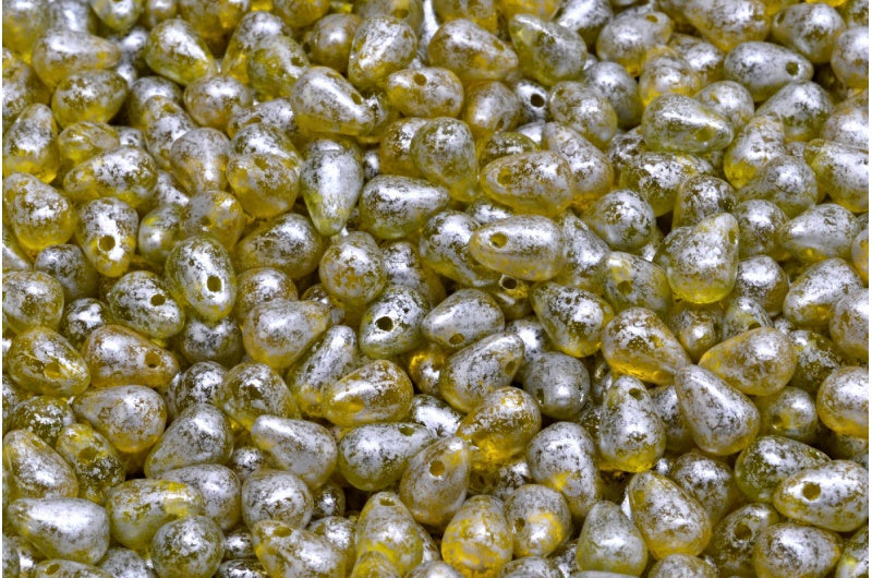 Drop Beads, Transparent Yellow Transparent Green Silver Splash (80020-50220-94400), Glass, Czech Republic