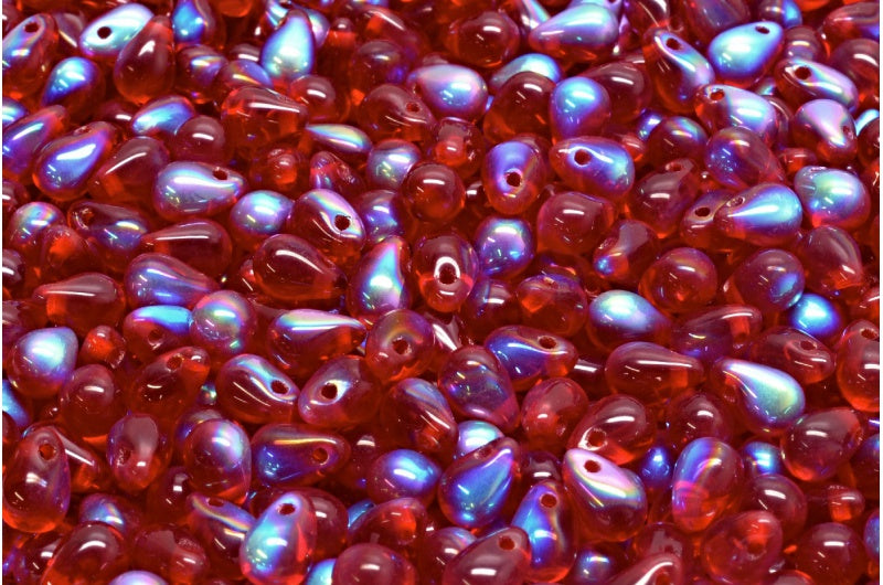 ドロップビーズ、透明レッドAb(90100-28701)、ガラス、チェコ共和国