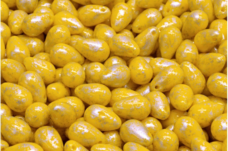 ドロップビーズ、不透明イエローシルバースプラッシュ(93100-94400)、ガラス、チェコ共和国