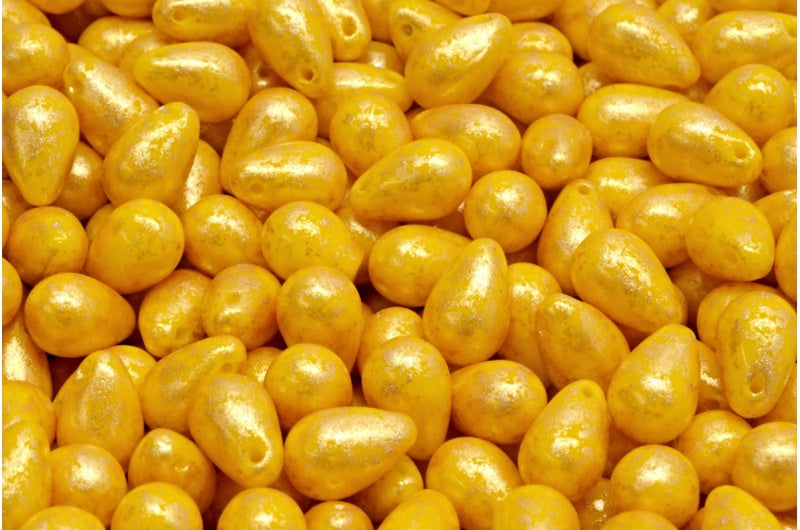 ドロップビーズ、不透明イエローゴールドスプラッシュ(93100-94401)、ガラス、チェコ共和国