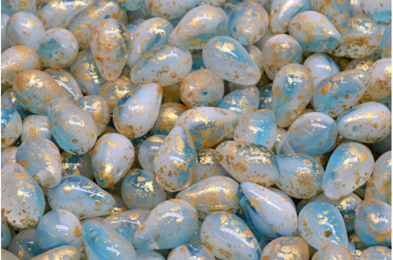 ドロップビーズ、R0162 ゴールドスプラッシュ(R0162-94401)、ガラス、チェコ共和国