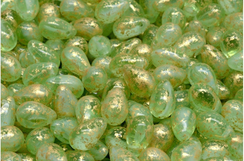 ドロップビーズ、X1651 ゴールドスプラッシュ (x1651-94401)、ガラス、チェコ共和国