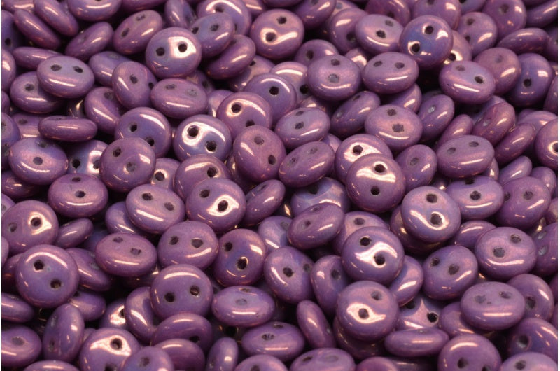 2穴レンズ豆ビーズ、白紫(02010-15726)、ガラス、チェコ共和国