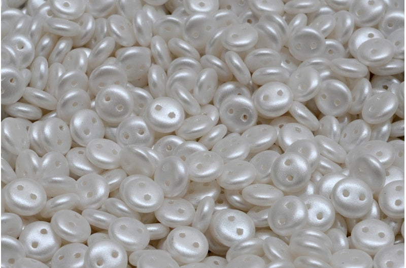 2穴レンズ豆ビーズ、ホワイトパールホワイト(02010-25001)、ガラス、チェコ共和国