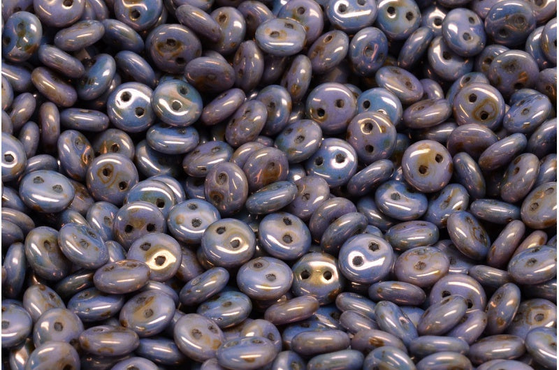 2穴レンズ豆ビーズ、ホワイトステイン、光沢バイオレット(02010-65426)、ガラス、チェコ共和国