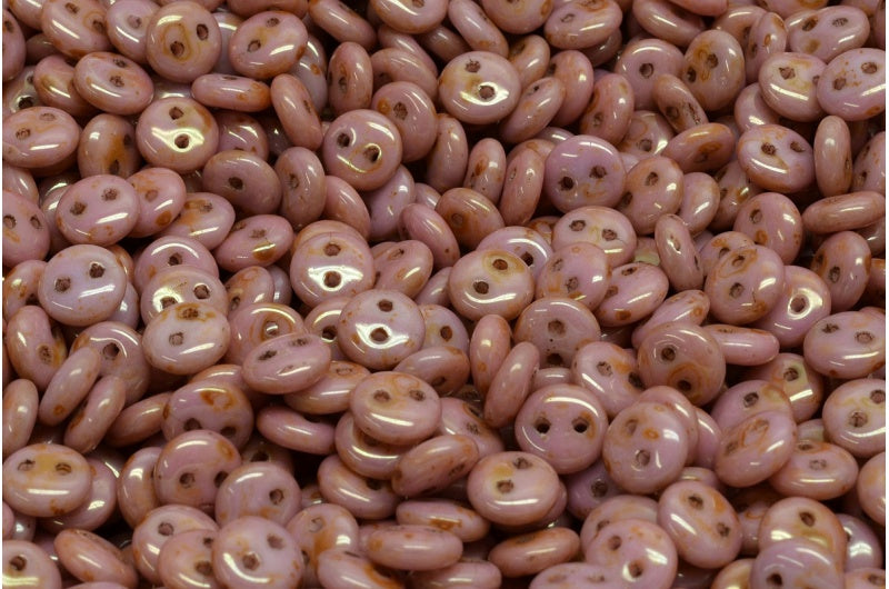 2穴レンズ豆ビーズ、ホワイトステイン、ラスターレッド(02010-65491)、ガラス、チェコ共和国