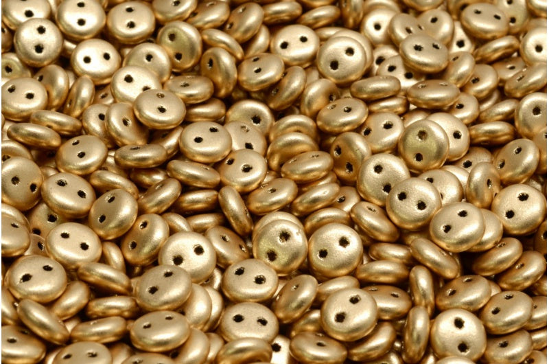 2穴レンズ豆ビーズ、ブラックアズテックペールゴールド(23980-01710)、ガラス、チェコ共和国
