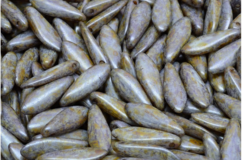 ダガービーズ、白紫茶色光沢斑点(02010-65329)、ガラス、チェコ共和国