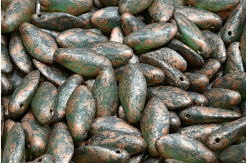 ダガービーズ、透明アクアマットコッパースプラッシュ(60210-84100-86750)、ガラス、チェコ共和国