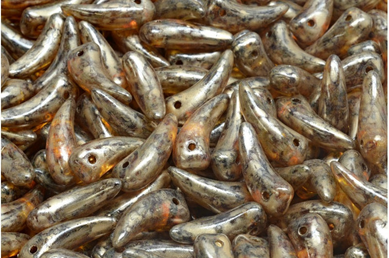 歯ビーズ、クリスタルトラバーチンゴールドスプラッシュ(00030-86800-86710)、ガラス、チェコ共和国
