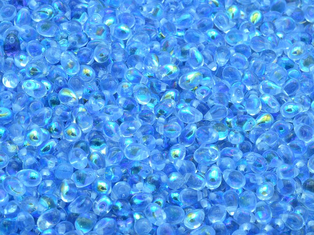 ドロップビーズ、透明ブルーAb(30010-28701)、ガラス、チェコ共和国