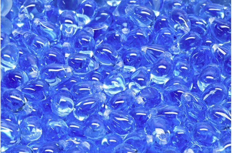 ドロップビーズ、透明ブルー(30030)、ガラス、チェコ共和国