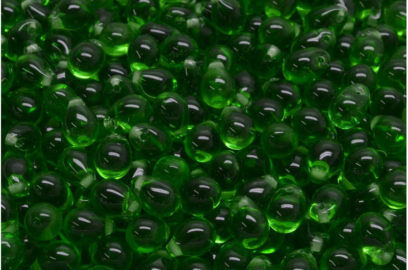 ドロップビーズ、透明グリーン(50110)、ガラス、チェコ共和国