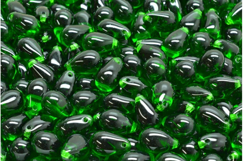 ドロップビーズ、透明グリーン(50140)、ガラス、チェコ共和国
