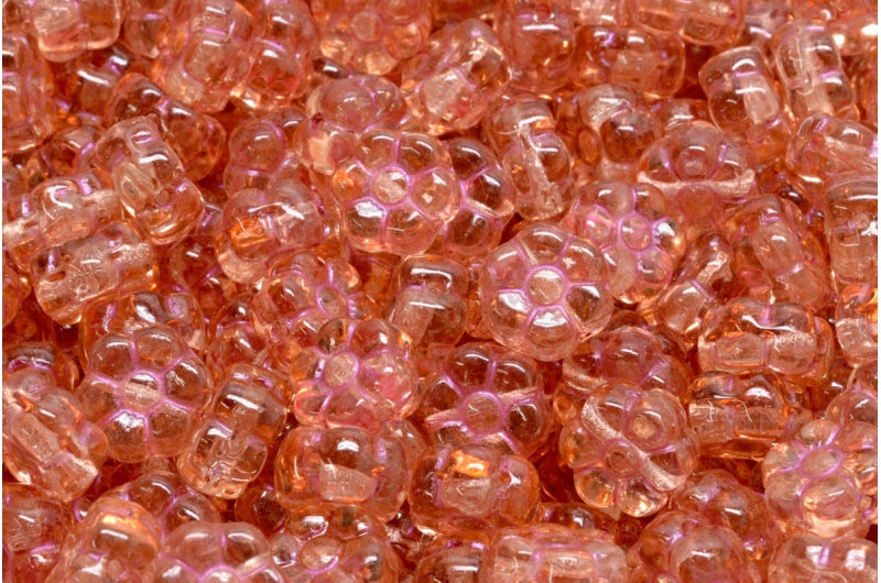 フラットフラワービーズ、クリスタルピンクライン、ライトピンクピーチ(00030-43807-34305)、ガラス、チェコ共和国