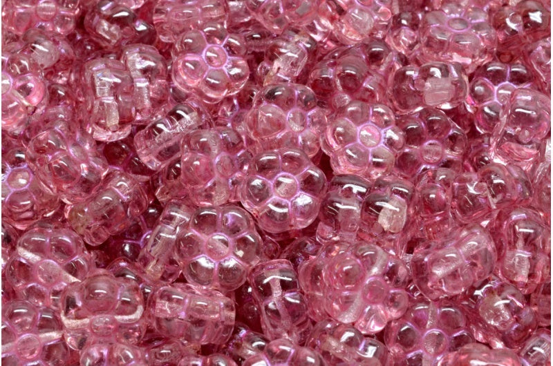 フラットフラワービーズ、クリスタルピンクライン、ライトフクシアピンク(00030-43807-34306)、ガラス、チェコ共和国