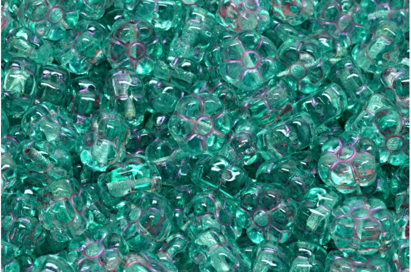 フラットフラワービーズ、クリスタルピンクラインライトターコイズ(00030-43807-34309)、ガラス、チェコ共和国