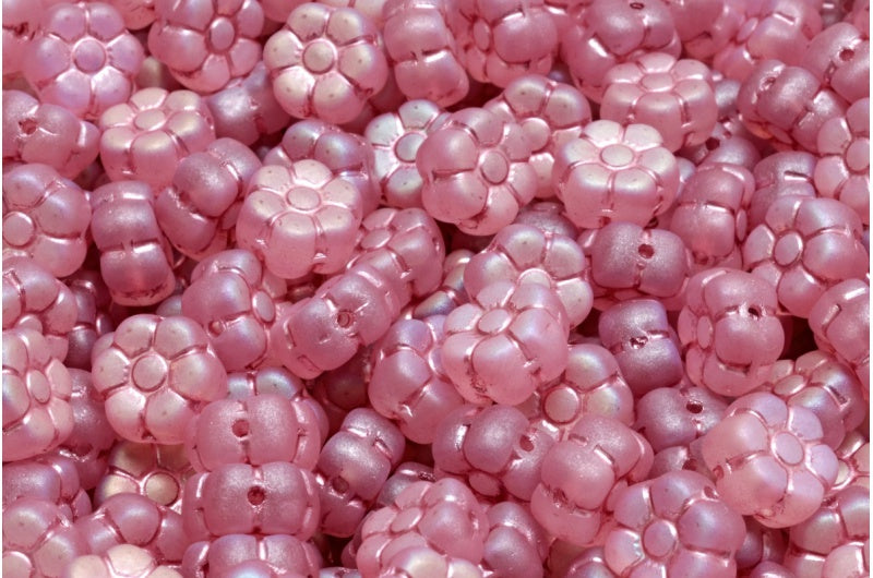 フラットフラワービーズ、クリスタルマットABフル(2Xサイド)ピンクライン(00030-84100-28703-54321)、ガラス、チェコ共和国