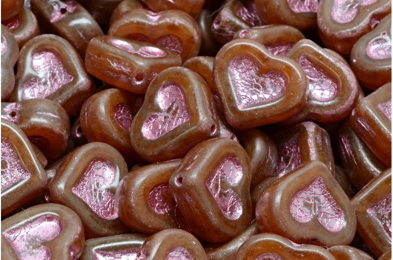 ハートとハートのビーズ、オパールピンクトラバーチンピンクライン(71111-86800-54321)、ガラス、チェコ共和国