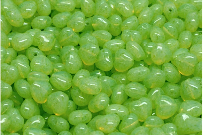 ハートビーズ、オパールホワイトライトグリーン(01000-34310)、ガラス、チェコ共和国