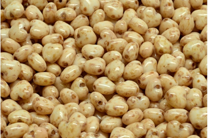 ハートビーズ、ホワイトトラバーチン、ベージュトラバーチン、スポット(02010-86800-33301)、ガラス、チェコ共和国