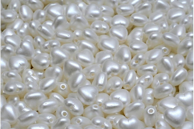 ハートビーズ、ホワイトパールホワイト(02010-25001)、ガラス、チェコ共和国