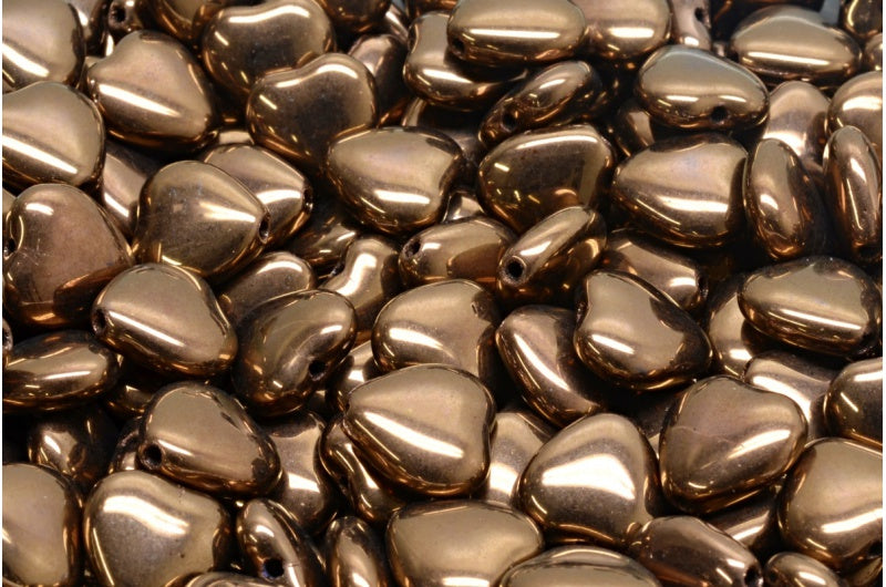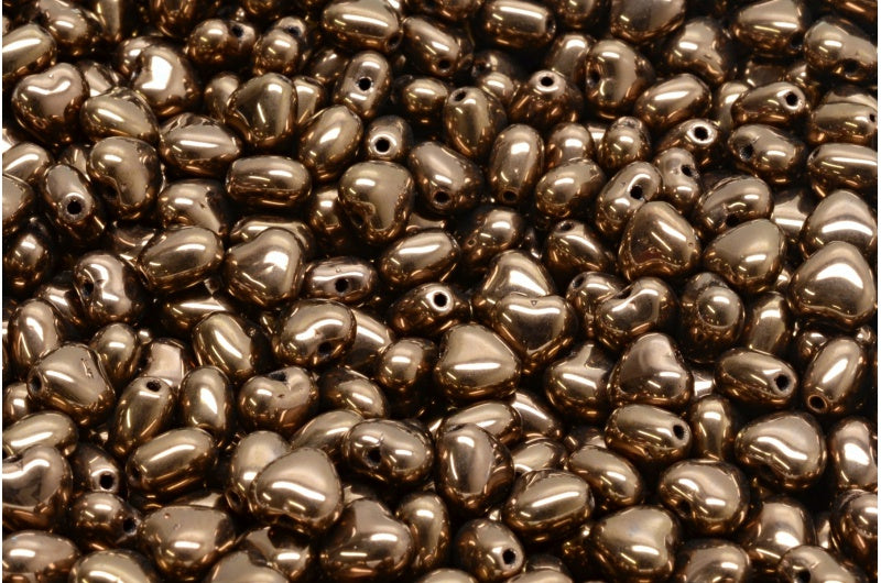 ハートビーズ、ブラックブロンズ(23980-14415)、ガラス、チェコ共和国