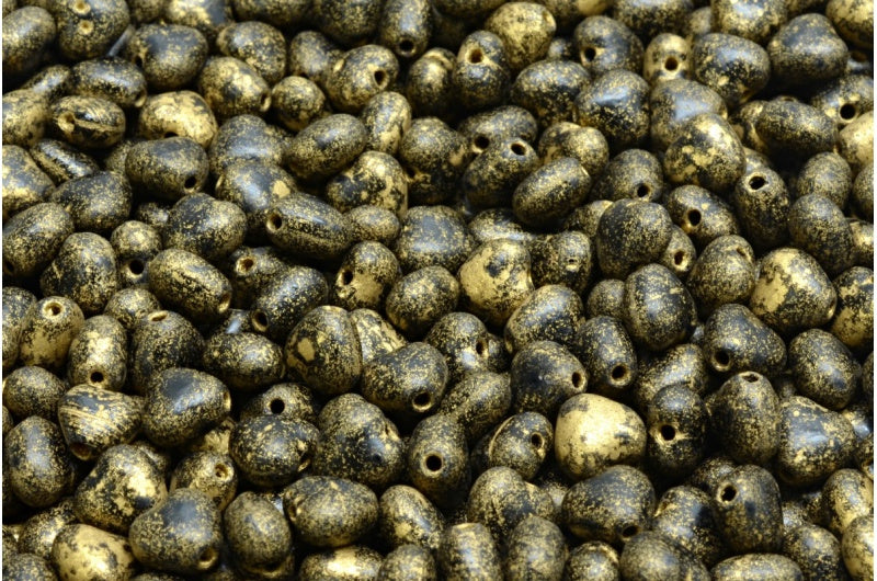 ハートビーズ、ブラックエッチングゴールドライン(23980-etch-54302)、ガラス、チェコ共和国