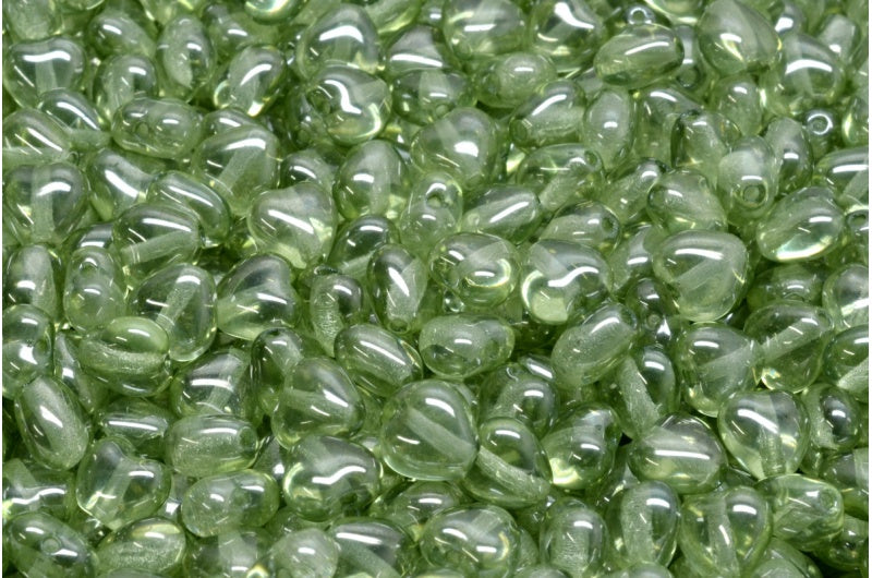 ハートビーズ、クリスタルラスターグリーンフルコーティング(00030-14457)、ガラス、チェコ共和国