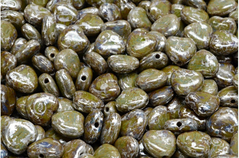 ハートビーズ、グリーンピカソ(53420-43400)、ガラス、チェコ共和国