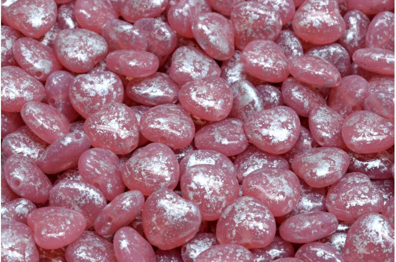 ハートビーズ、オパールピンクシルバースプラッシュ(71010-94400)、ガラス、チェコ共和国