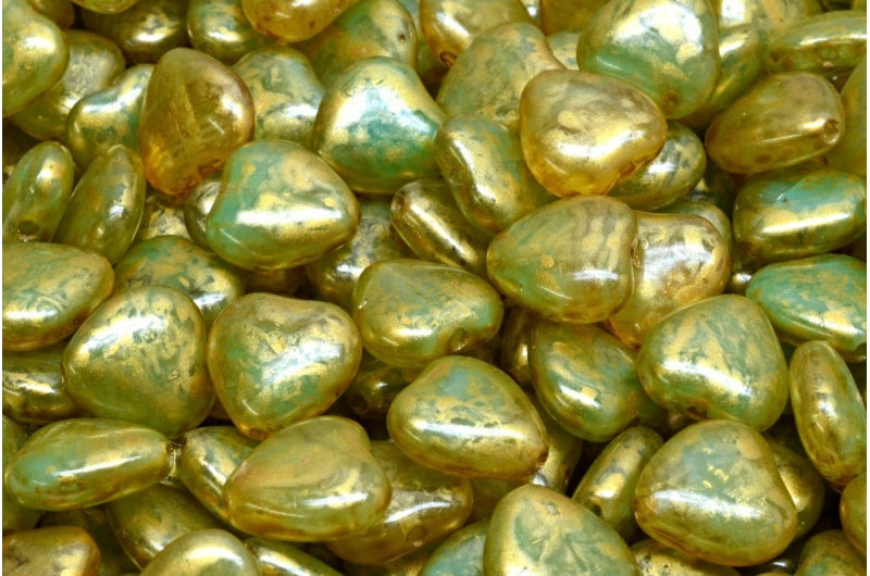 ハートビーズ、R0631 ゴールドスプラッシュ(R0631-86720)、ガラス、チェコ共和国