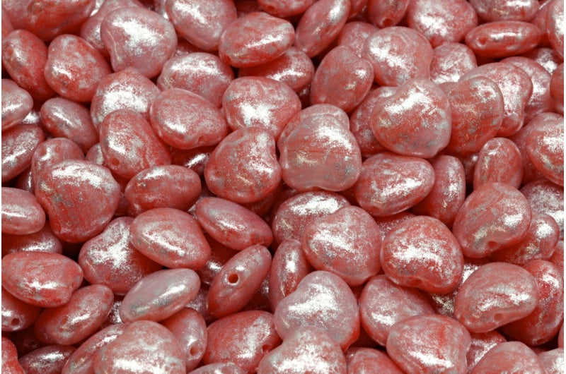 ハートビーズ、ホワイトレッドシルバーグレー(R2932-34301)、ガラス、チェコ共和国