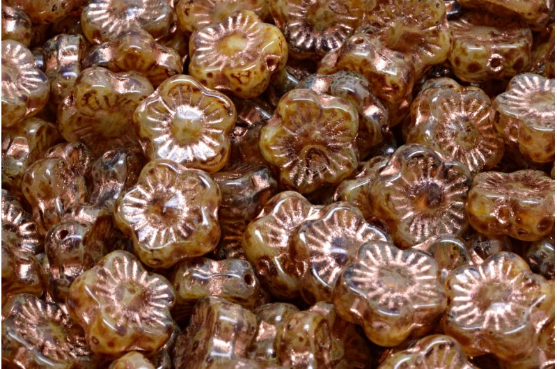 サンセットフラワービーズ、R0021 トラバーチン銅張り(R0021-86800-54307)、ガラス、チェコ共和国