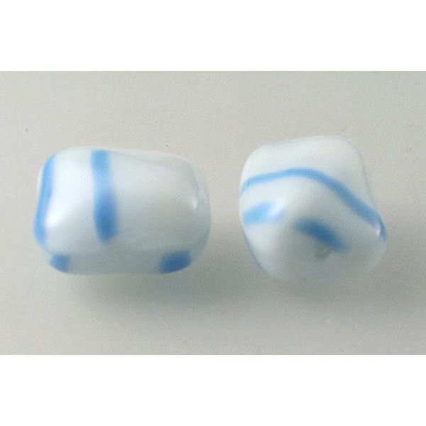 プレス成形ガラスビーズ、白と青のストライプ(08605)、ガラス、チェコ共和国