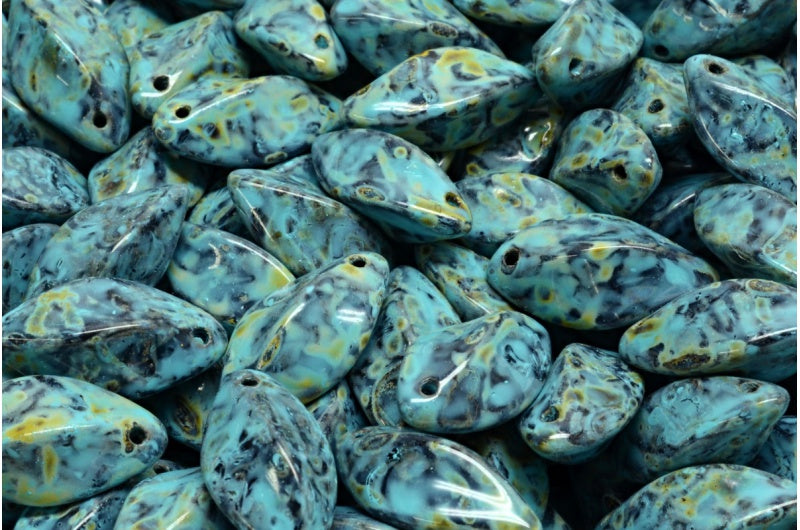 ツイストビーズ、ブラックトラバーチンターコイズスポット(23980-86800-33309)、ガラス、チェコ共和国