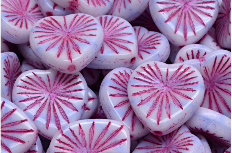 キウイハートビーズ、ライトブルーピンクのライン入り(07304-43807)、ガラス、チェコ共和国