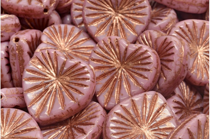 キウイハートビーズ、不透明ピンク銅線入り(74020-54307)、ガラス、チェコ共和国
